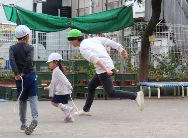 今日も園庭には元気な声が響き、子どもたちはしっぽとりの鬼ごっこを楽しんでいます。