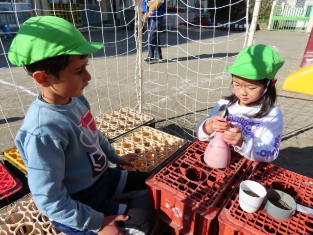 午後は、サッカーゴールやビンケースなどを運んで場を作り、お家ごっこを楽しむ姿が見られました。おひさまが当たる場所に家を作ったので、友達や教師と「あったかいね!」と言いながら、ほのぼのと遊ぶことを楽しんでいた子どもたちでした!