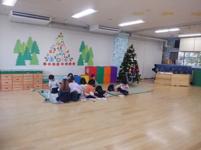 その後は、広々としたホールでツリーを見ながらお弁当を食べたぶどう組さんでした。