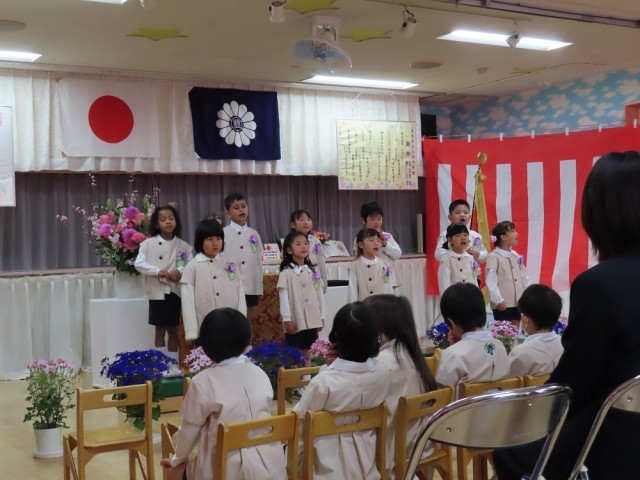 お別れの歌と言葉では、いつもよりも大きな声で、はきはきと幼稚園の思い出を語り、歌っていたぶどう組の子どもたち。