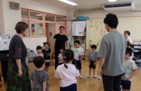 日頃から靴を脱ぎ履きしたり、遊びの場として使ったり、様々な場面で使っているグリーンテラスを暑い中、工事の方が作業を進めてくださっています。