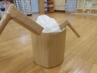 1月15日(木)室内サーキットお餅をつく真似が出来る杵と臼を作りました。ぺったん...