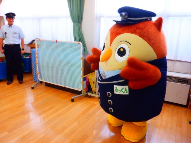 制服を着てマスコットの『ふっくん』と写真を撮ってニコニコのみんなでした。